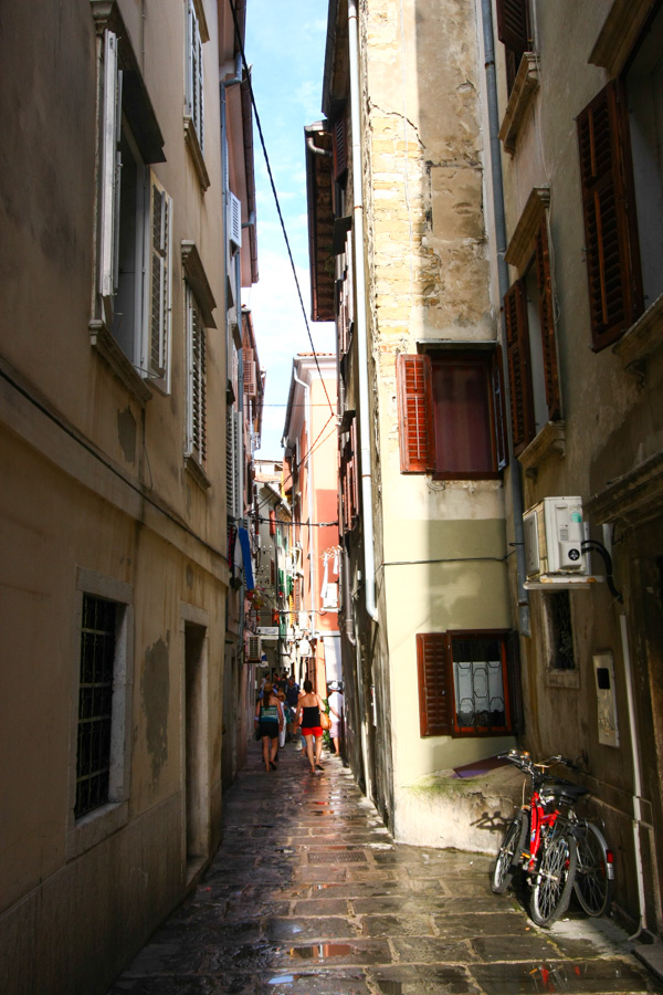 | urocze uliczki Piranu. jedyny możliwy środek transportu to jednoślad. |
